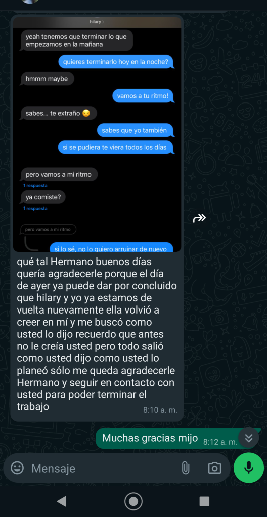 ¿Tu pareja se ha alejado? ¿Se fue sin explicación? El dolor de la separación no tiene que ser permanente. Con mis amarres de amor, podemos trabajar para que esa persona regrese a tu vida, pidiendo que su amor, deseo y atención sean solo para ti. No sigas sufriendo; hablemos ahora mismo y busquemos la forma de recuperar tu felicidad.